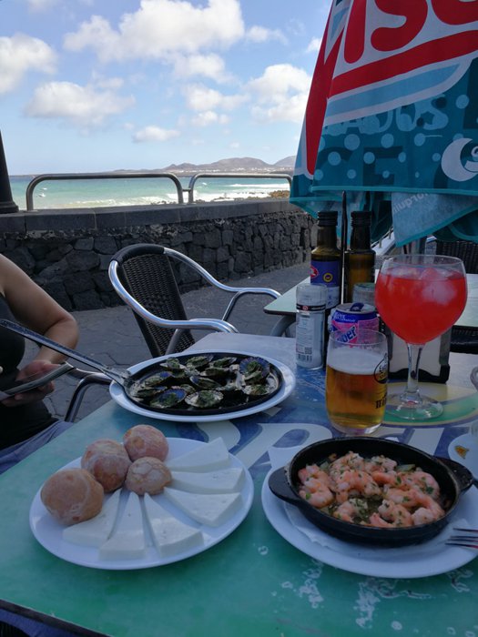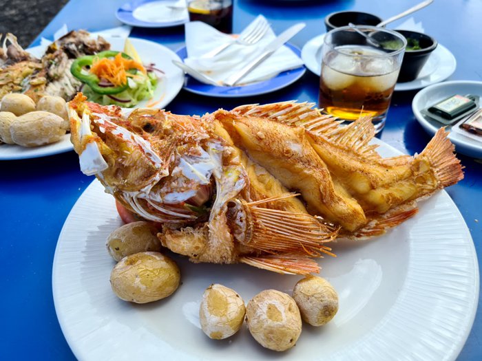 Enjoy the outdoors and great views at El Bisquito restaurant on a small balcony overlooking the ocean, which serves seafood dishes, Spanish local cuisine, and distinctive vegetarian options; Customers can choose from fresh fish, grilled octopus, oysters, grilled or fried shrimp, and other appetizers and desserts.