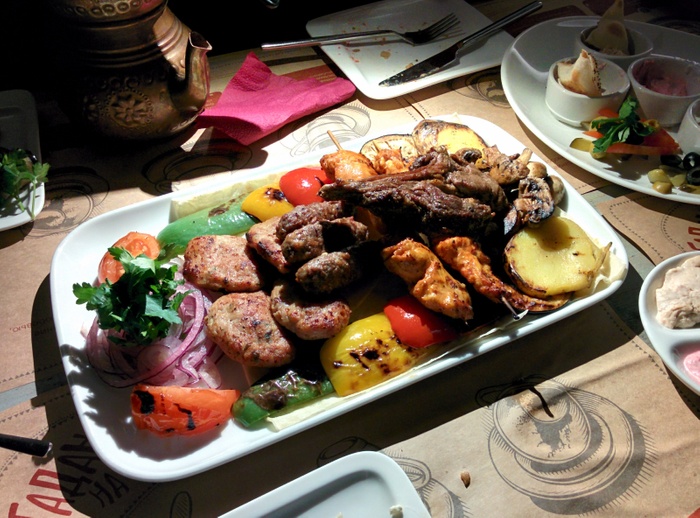 Turkish restaurant serving various delicious Middle Eastern food. The place has a modern and distinctive decor with oriental and Turkish details. The menu includes many types of grills, such as kebabs, meat cuts, and shish tawook, in addition to shakshuka, pastries with meat, vegetables, cheese, grilled eggplant with minced meat, samosas, and grape leaves, and many dessert dishes such as kunafa, baklava, ice cream, and types of Cakes, and drinks such as tea and Turkish coffee. In this restaurant, you can smoke hookah with different flavors.