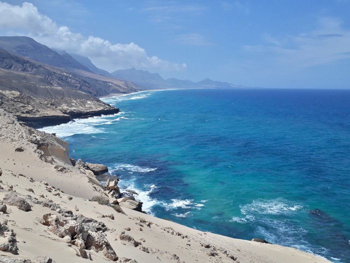 Barlovento de Jandia Beach is one of the most wonderful tourist destinations on the island of Fuerteventura due to its clear, unpolluted blue waters and golden sands. You can reach it through a safe dirt path that starts from the village of Moro Jable and passes through Mount Moro, where you can enjoy a wonderful panoramic view of the beach, and in it you will find a small shantytown It has a small restaurant.