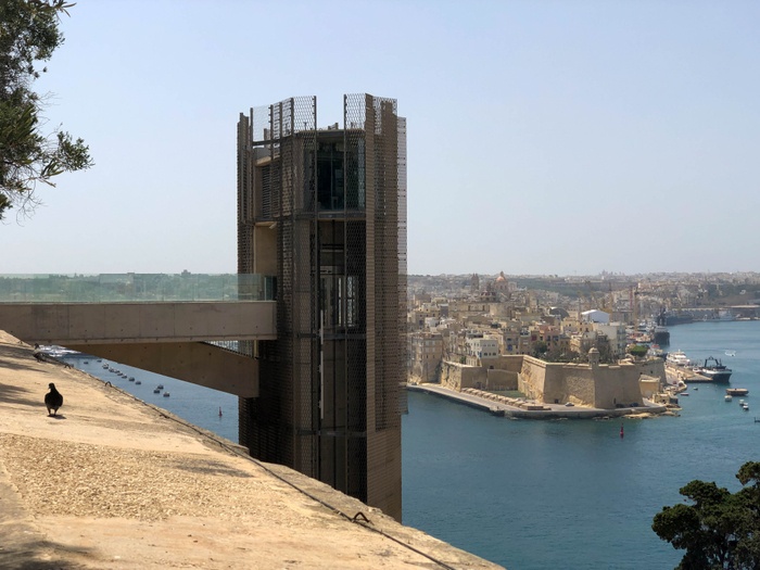 This new lift was opened in December 2012. It connects two parks in the city center. It is mentioned that the elevator is located in the original location where the previous elevator was, which was dismantled in 1983, and operated between 1905 and 1973. The height of the elevator is 58 meters, and it can carry 21 people at a time. The ride takes about twenty-five seconds, making it the fastest route between the parks. The lift also provides a practical alternative for the thousands of travelers who disembark at the Valletta passenger terminal to reach the city with its shops, restaurants, churches and museums.