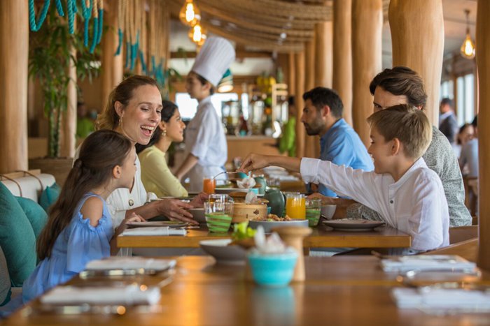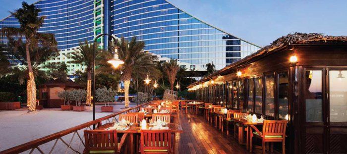 There are many aspects that must be highlighted when talking about this unique place, as it directly overlooks the beach and the Burj Al Arab behind it, and the restaurant also includes a children’s area, with a TV, games, and even an ice cream machine, and the best of all, of course, are the rich dishes of international specialties And Asian in particular, the best is noodles with shrimp.