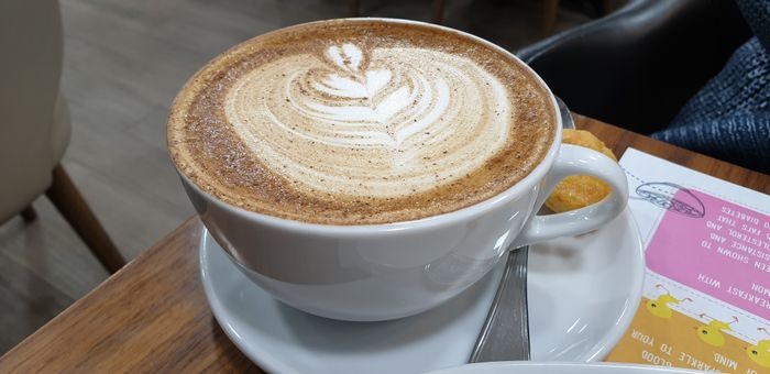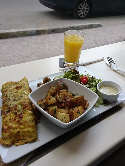 This place has a group of comfortable seats in the outer courtyard and the inner building, and you can inhale the aroma of hot coffee from the moment you enter the place. It offers many types of delicious coffee from American coffee and Arabic coffee, in addition to a group of natural juices and tea, and many other options on the menu that also offers a set of dishes such as breakfast meals, including sandwiches, eggs, pancakes, soups, and others. There is a bookshelf in the place, where a collection of various daily newspapers and magazines are available for browsing by the patrons of the café. It is a beautiful place with a great atmosphere, visit and enjoy with your family and friends.