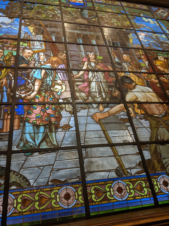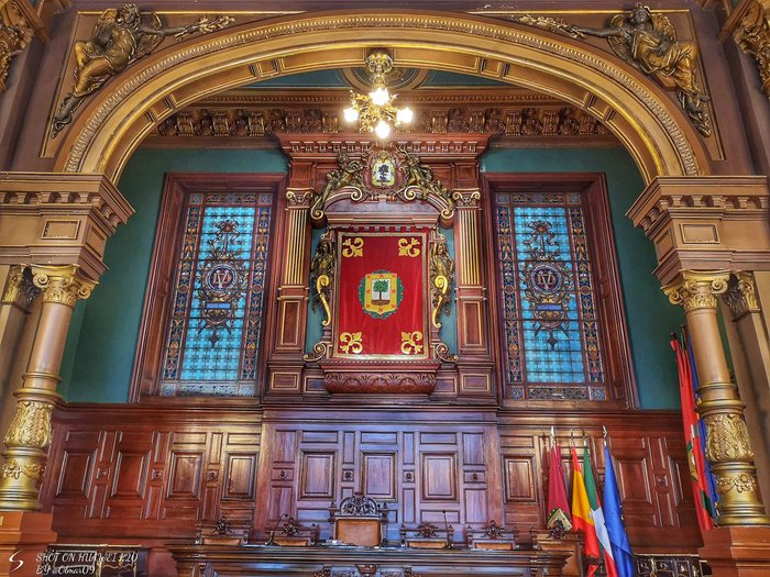 The building of the Bilbao Provincial Council was inaugurated in 1900, especially on the feast of St. Ignatius, the patron of Bizkaia, and it was designed by architect Luis Aladrén. Upon entering, you can see a very special room rich in interesting artwork.