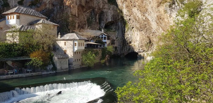The town of Blagaj is located approximately 20 minutes from the city of Mostar, and it is one of the vital destinations that attract many tourists from all regions near and far. This town was built on the ruins of the city of Buna, which has origins dating back to the Roman era, which enriched it with many monuments and Ottoman architecture, such as mosques, khans, and hospices that were built by the dervishes. In addition, she has a natural beauty that catches the eye.