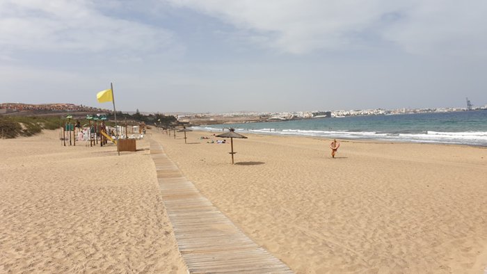 Blanca Beach is located in the city of Puerto del Rosario, and it is famous for its soft sand and strong waves, ideal for water sports enthusiasts such as surfing and windsurfing, but it is small near the beach, which makes its waters suitable for swimming as well, and there are many excellent facilities that allow spending a special day with the family on the beach.