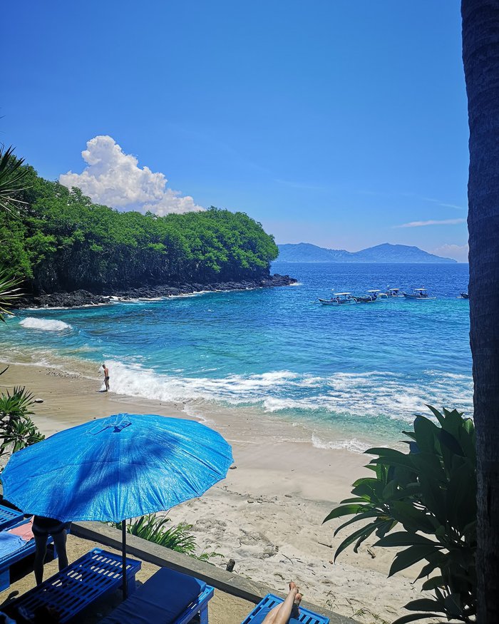 Blue Lagoon Beach is located next to the main beach of Padangbai, which is a long stretch of white sand surrounded by green hills and palm trees. It is characterized by its clear turquoise waters, ideal for snorkeling and diving, rich in colorful coral reefs located a few meters under the water. Visitors can also relax on its sands and enjoy the Balinese sun with A refreshing drink from one of the cafes selling refreshments in the area. It has a relaxing resort with villas with gardens, a spa, swimming pool and a restaurant.
