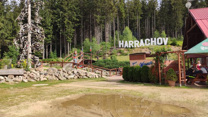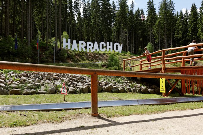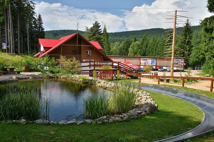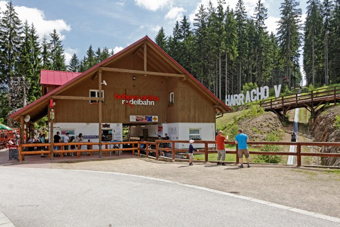 Harrachov slide, one of the most interesting places, not only in the town of Harrachov, but also in the Czech Republic, where adventurers enjoy sliding through 1400 meters from the top of the hill to the end of the slope, passing through 22 turns, with 5 different heights, and entering through 3 tunnels during the tour And the speed of the single or double trolley is controlled by the side hand brake.