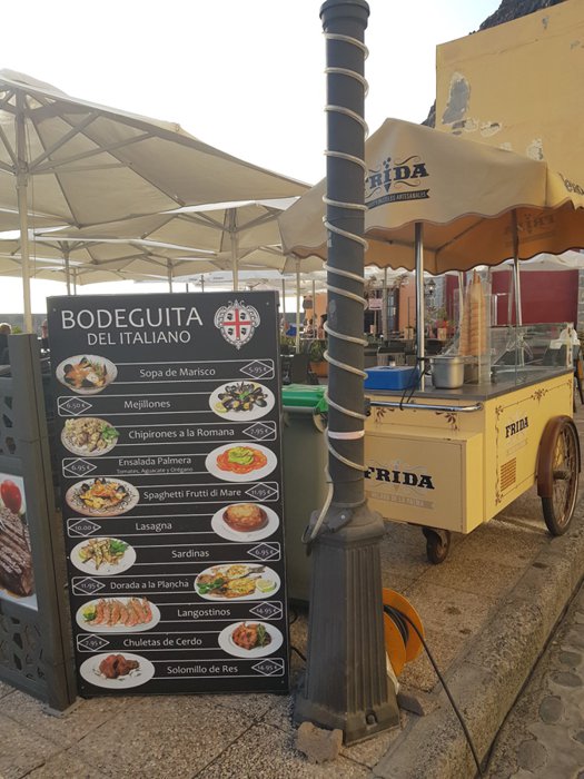 Bodeguita del Italiano restaurant is located in Tazacorte next to the beach and has a balcony with a charming view of the sea, in which you can enjoy with family or friends eating many dishes such as seafood dishes, beef steaks, pizza, pasta, and tapas dishes, and it is characterized by its wonderful and friendly service .