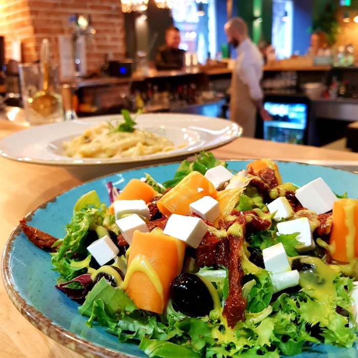 In this restaurant, you will find what satisfies you in all respects, as it is characterized by a warm and calm atmosphere, comfortable sessions, decorations with very simple designs, and live music is played on weekends. It also specializes in serving Mediterranean food rich in delicious flavors such as pizza, pasta, salmon with legumes and herbs, and grilled chicken breast with Rice, and there are also delicious burgers that are served with refreshing drinks and crispy fries, and we do not forget the list of delicious desserts, such as tiramisu and whipped cream, decorated with fresh berries.