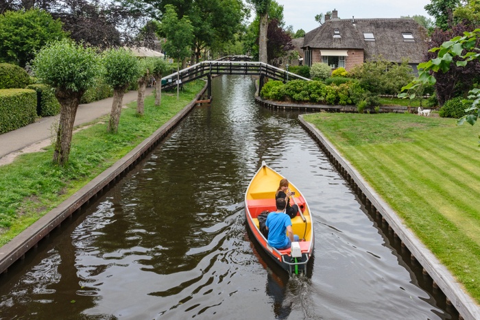 You can rent canoes or kayaks at the village canal in the center of Giethoorn. The canal is the starting point for a boat trip through Giethoorn and the National Park, with a good explanation of the village. Free pillows are available upon request, as well as life jackets for children. The water in Giethoorn is shallow (maximum 1 metre). The boat passes areas in the village that are an opportunity for a picnic in the open air.
