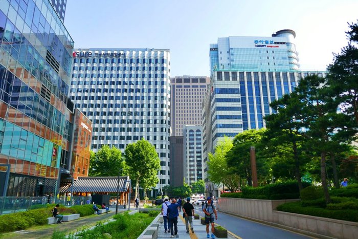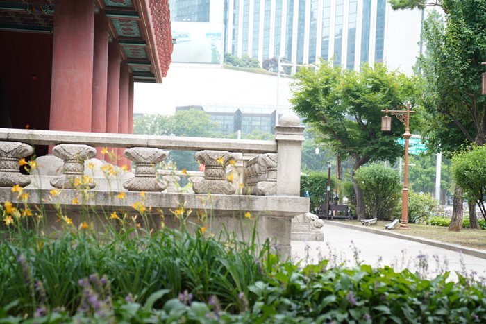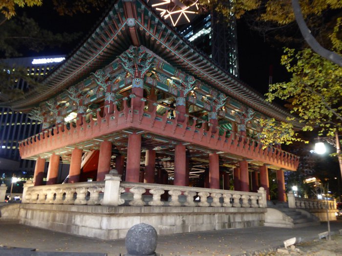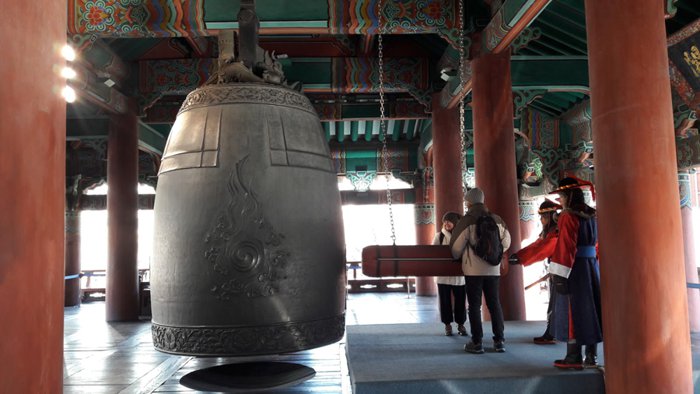 Boshinggak is the pavilion that houses the giant hanging bell that was made in 1986 and was used during the Joseon Dynasty to indicate the time. The bell was rung 33 times at four in the morning, indicating the start of the day and the opening of the city gates, and at ten in the evening, The bell rings 28 times and the gates are closed at night. The bell was originally located at Wongaksa Temple in 1468, but was moved to its current location in 1619. The original bell has high cultural value and is preserved today in the National Museum of Korea, where tourists and locals can visit. Both enjoy commemorating history with a one-hour bell-ringing ceremony daily (except Mondays).