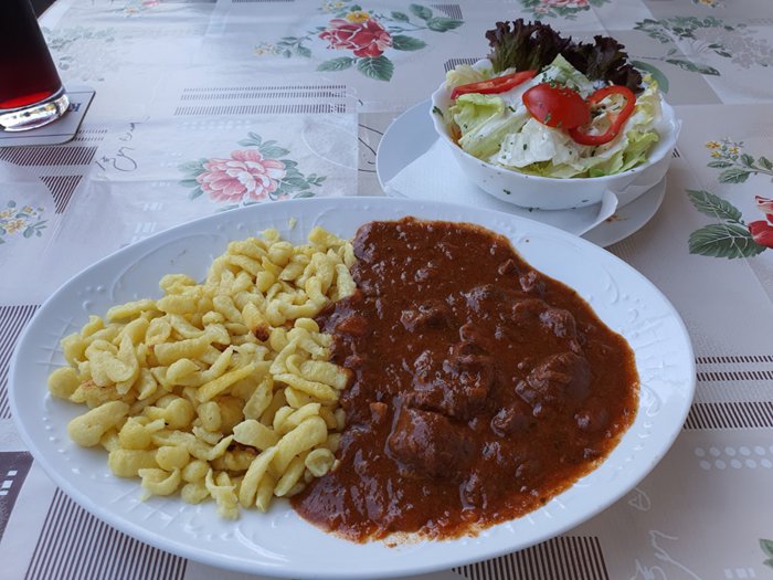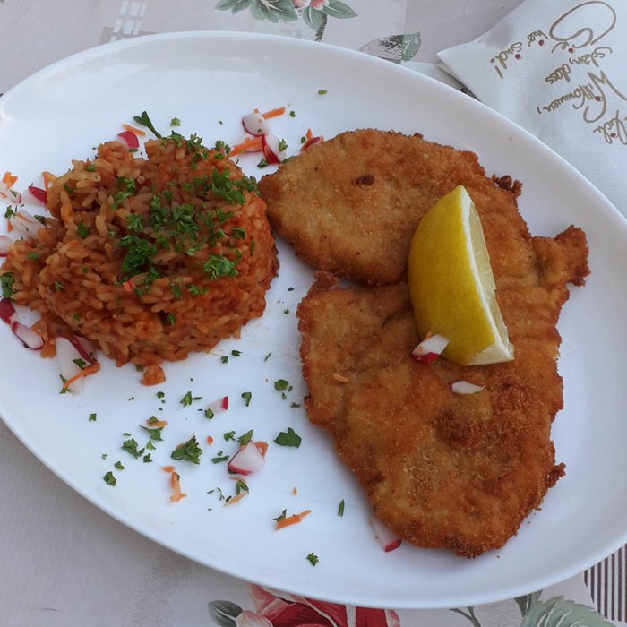 Customers enjoy sitting in the front yard of the Bosna Restaurant "Metzgerstuben", as it enjoys a unique beauty and a special atmosphere, as it is distributed with flowers and green plant beds, shaded by tall trees, and the restaurant offers, through its own menu, many delicious options, including various grills of meat Accompanied by salads and cooked rice, fried chicken strips with crispy potatoes, cold meats with cheese and many others.