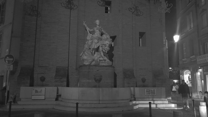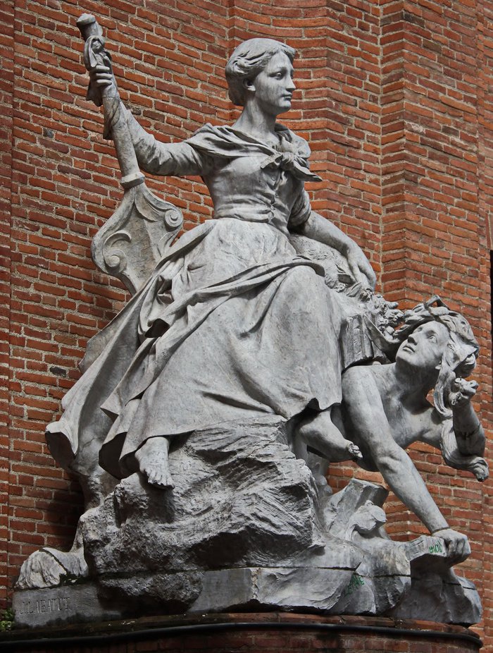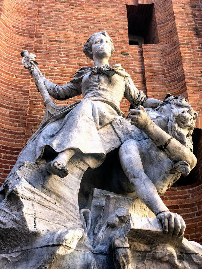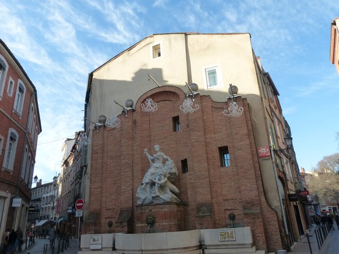 The Boulbon Fountain is located at the corner of Boulbon and Cantegril Streets in the city of Toulouse. It is the work of the famous sculptor Labatut. It consists of a majestic marble statue in the form of a woman sitting on an arc. It symbolizes the Garonne River, provides electric power to the city, and water flows from the heads of lions. into three circular basins, her statue was rehabilitated in 1984 by architect Bernard Calley.