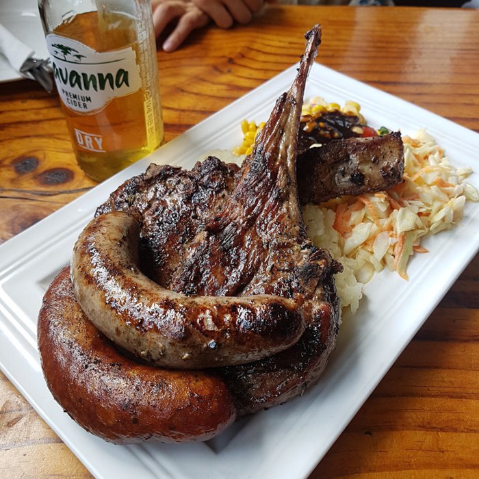 Bray Republic serves home-cooked fare inspired by traditional South African cuisine, with a focus on homemade sausages, borers, lamb chops and freshly baked meat pies. The restaurant opened in 2011 and has since become a favorite with meat-loving locals and tourists. It is known for its great hospitality and lively atmosphere that immerses customers in South African culture.