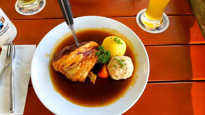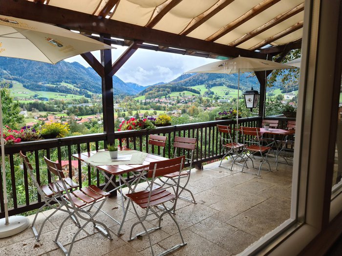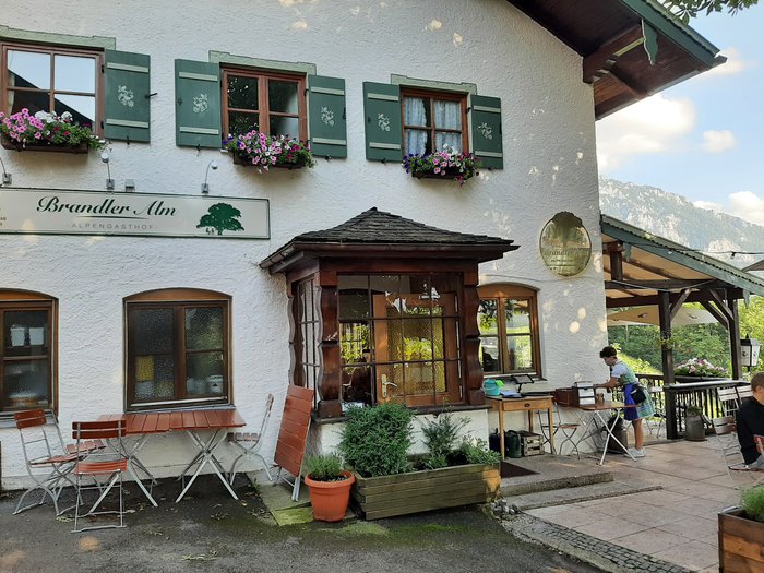 Brandler Alm Restaurant offers amazing views of the surrounding scenic nature from its outdoor terrace, and enjoys a beautiful hillside location in Ruhpolding in a beautiful building dating back to 1888 AD, and serves many local dishes such as pancake soup.