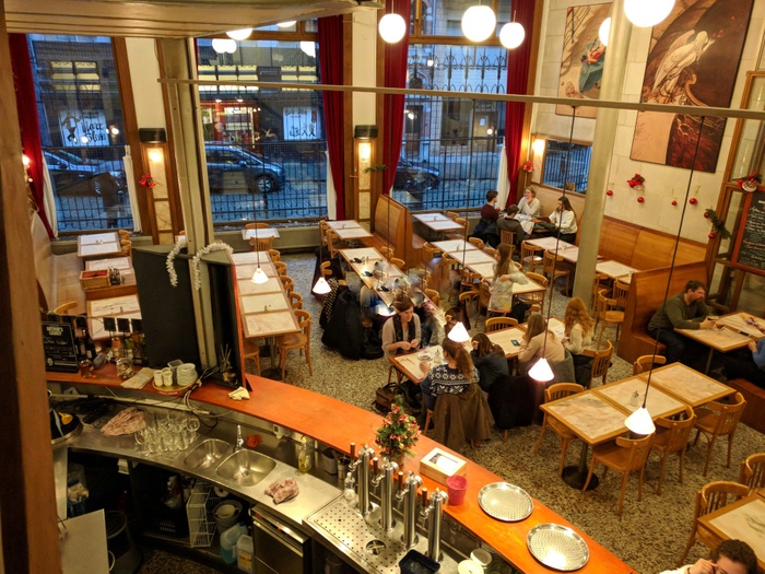 Located in the center of the city, this cool café has a great atmosphere with an Art Nouveau design by Victor Horta, serving the most delicious Belgian cuisine. The food menu is very reasonable and includes salads, pasta dishes, meat and main types of fish, in addition to that it offers a lot of cold and hot drinks such as coffee, espresso and delicious and fresh cocktails.