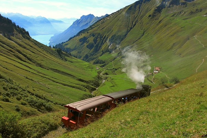 The Brienz Rothorn Railway has been taking passengers to the summit of Brienzer Rothorn since 1892, and is the only daily steam railway in Switzerland. It runs from the foothill village of Brienz to the summit of Brienzer Rothorn and is a must-try for train and scenic lovers. And experiences that happen once in a lifetime, and it is worth noting that this track is considered the fourth highest railway track in Switzerland, and at some points it climbs a slope of 25%, the length of the journey is 7.6 km and it takes about one hour, and unusually, the engine pushes its cars Instead of pulling them up, in about an hour, small steam locomotives propel the cheerful red train cars up to the 2,350-meter-high summit, offering sweeping panoramic views of the mountain, Lake Brienzer, and the surroundings. Adult ticket price: CHF92. Child ticket price : Free, prices are subject to change!