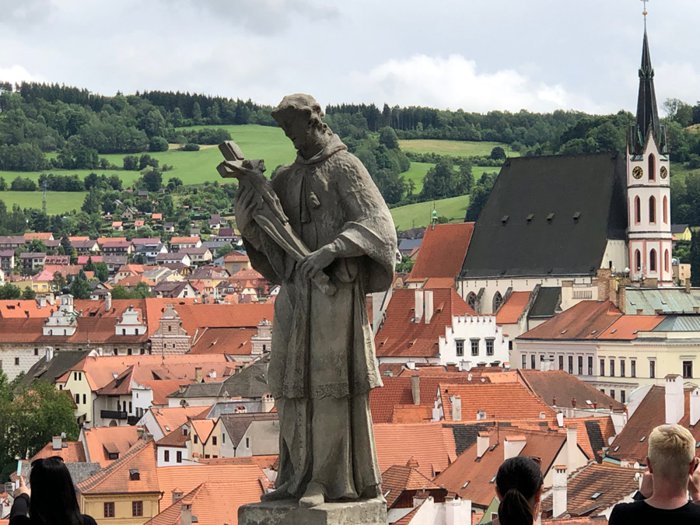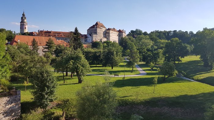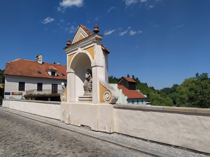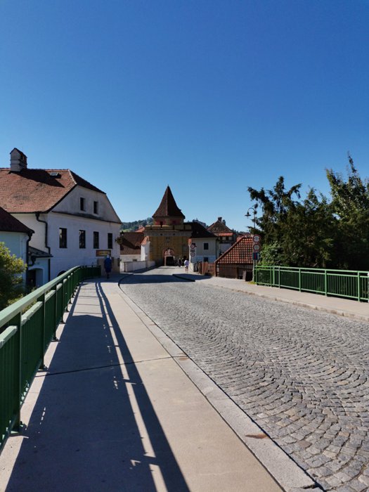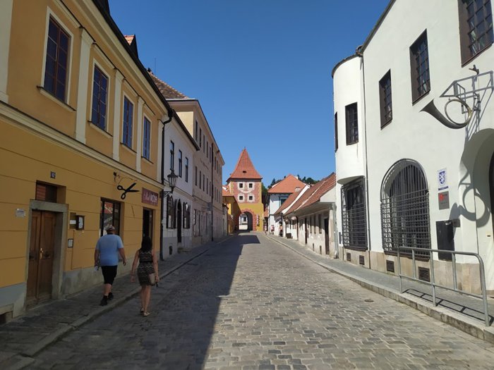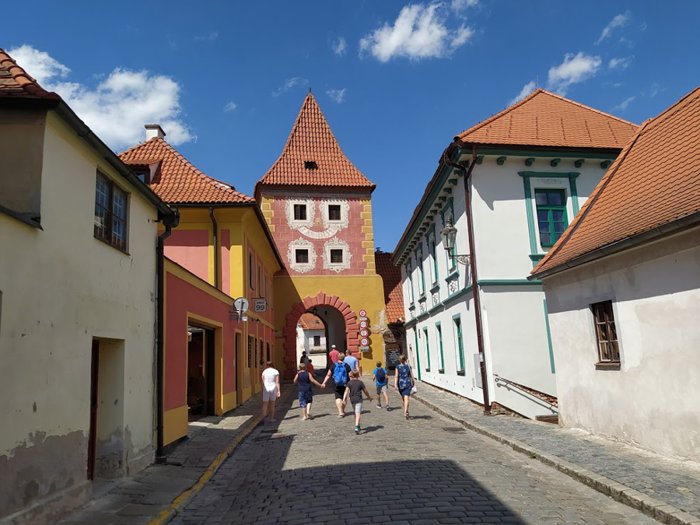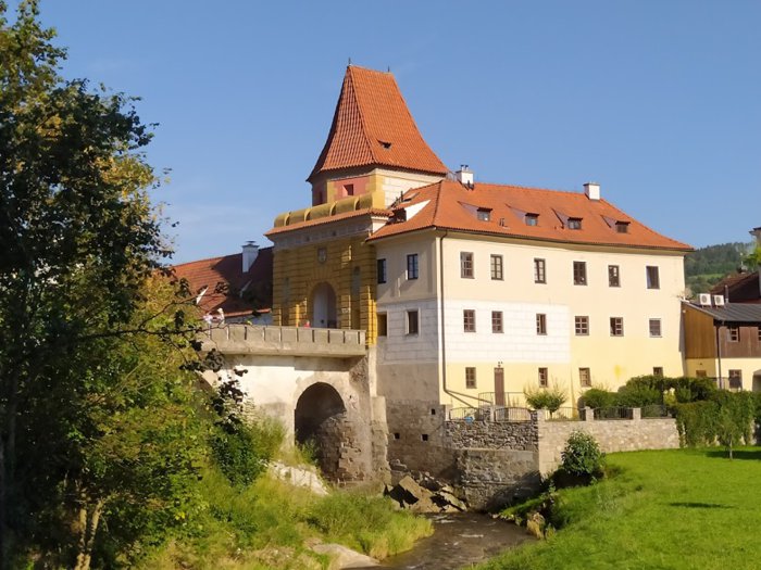 The old city gate, the Budweiser Gate, is the entrance to the town of Cesky Krumlov, from the northern façade, it was built in 1602 AD, and the gate was initially a pedestrian path, and then it became a carriage way, and after that it was built in its current form, at the beginning of the sixteenth century, With a room designated for guards at the top of the gate, and the city's emblem above it, individuals visit the gate to take memorial photos, and contemplate its architectural details.
