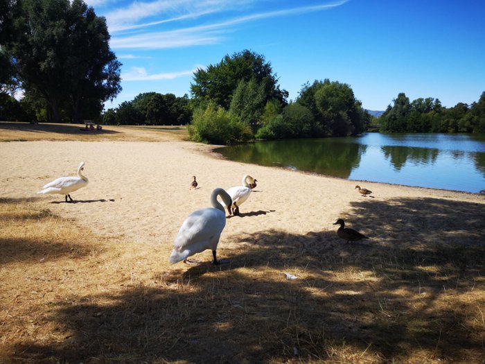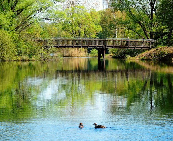 Lake Buga and its surrounding area is a popular destination for the whole city of Kassel. In summer, the focus is on swimming and enjoying its fresh water. The lake is a natural body of water in which you can swim in approved and permitted areas. Those who do not wish to swim can use the spacious area for jogging, fishing, windsurfing or sailing, cycling, table tennis or playing football. And if you just want to relax, enjoy a good book and take a walk under the green trees surrounding the area. And do not forget the children, there is a water playground with climbing equipment, cable cars and table tennis. Many types of birds gather on the surface of the lake, such as geese and ducks, to form an integrated painting.