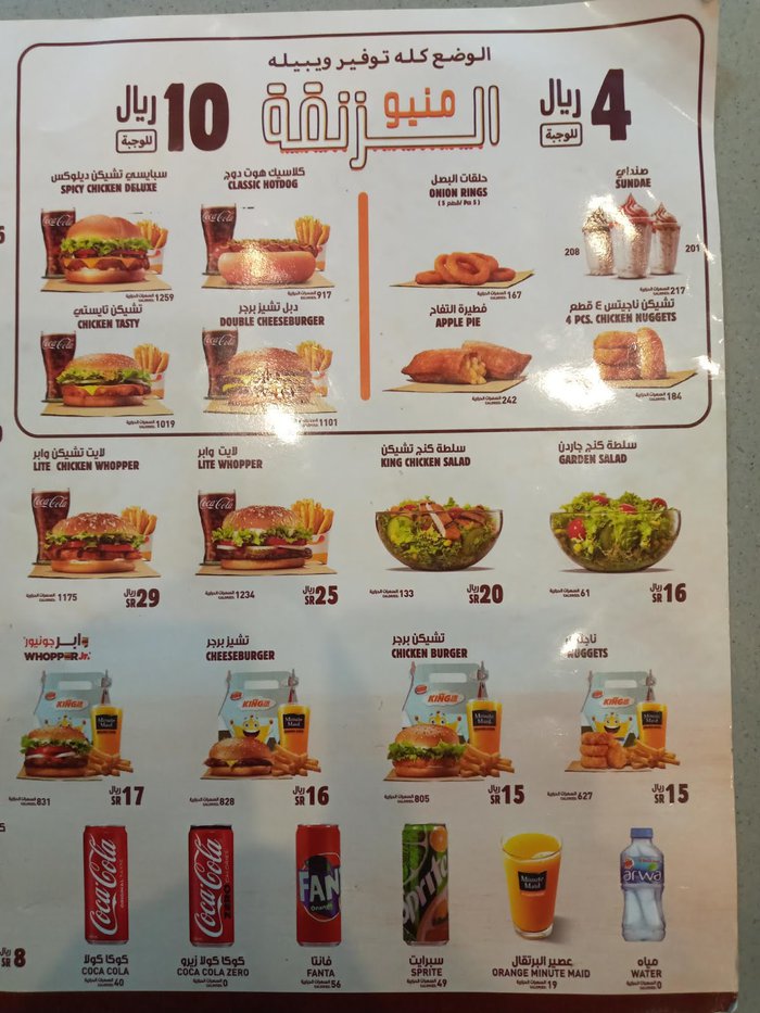 The Burger King international chain of restaurants has branches throughout the Kingdom of Saudi Arabia and specializes in providing delicious burger meals with various additions, accompanied by fried potatoes and a set of special sauces and soft drinks.