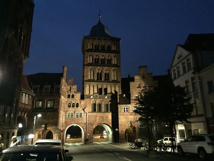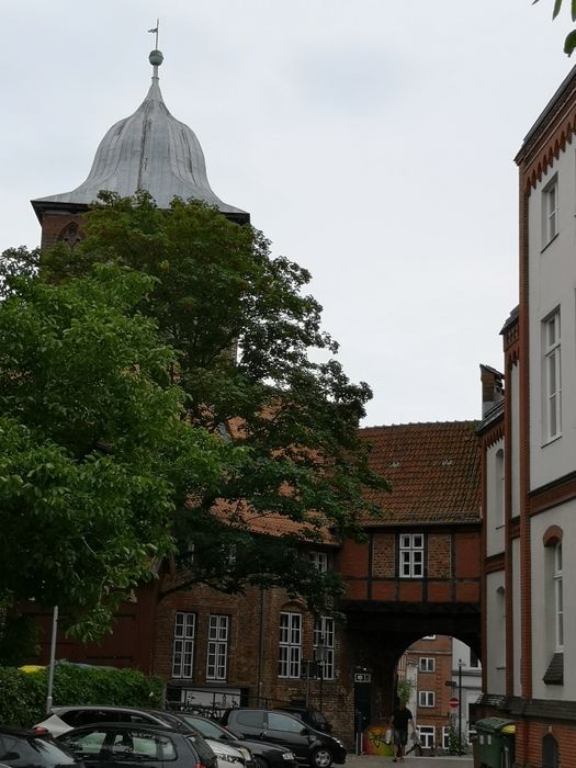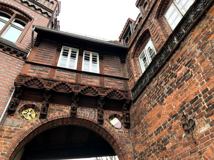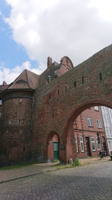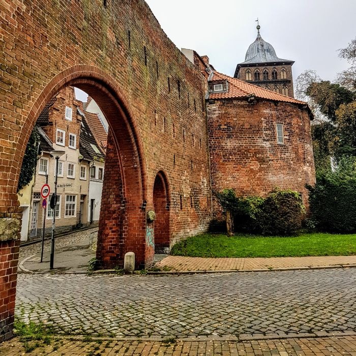 The city of Lübeck contains many historical gates distributed throughout it, and the Bergtor is the northern gate of the city, dating back to the medieval period, specifically in the year 1444 in the Gothic architectural style, and the gate is characterized by its baroque helmet-like roof, which was added to the gate in 1685. It is a fortified gate built around it And above it are many defensive fortifications, including an ancient tower built in the Romanesque style, which is considered one of the most prominent monuments in the city.