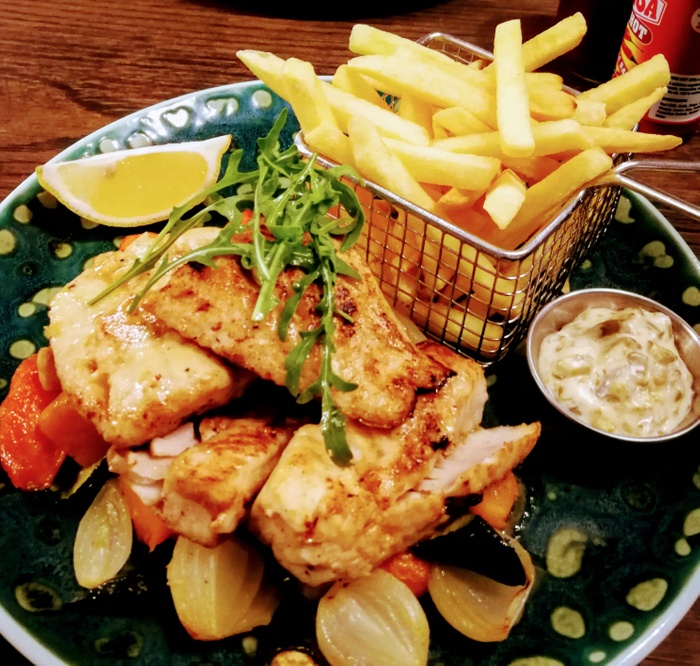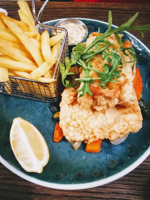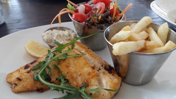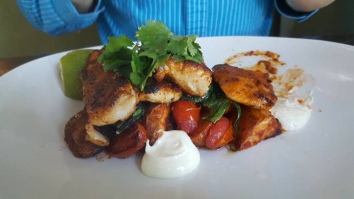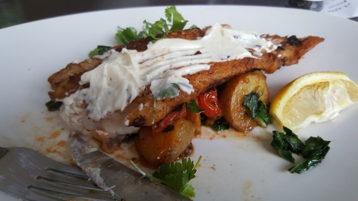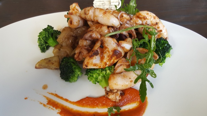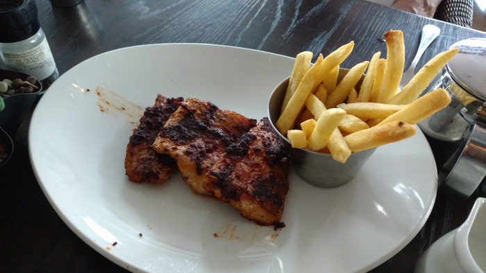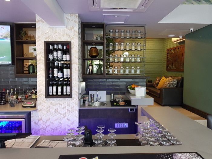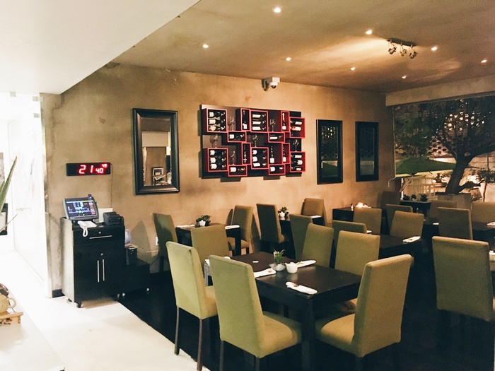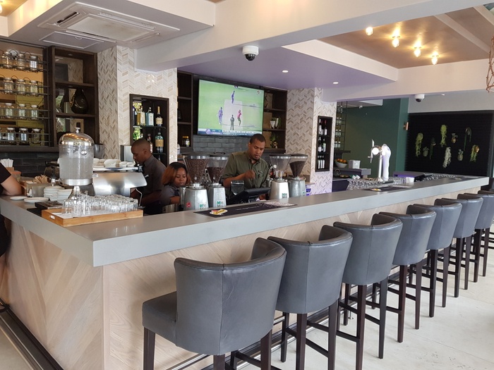 Ample space, well designed and elegant furnishings, it starts on the shaded pier, inside the restaurant is split over two levels and offers firm cane chairs, comfy sofas, the decor is pleasing to the eye, the walls are well lit ivory with relaxing shades of green, the water feature whirls softly and the music It is perfect, pleasant jazz music, and offers various drinks, the best of which is amazing coffee, or perhaps fresh fruit for a refreshing and healthy juice, and from breakfast granola, salads, omelets, calamari snacks, fish cakes, and sandwiches, and there is also a delicious and delicious selection of cakes and desserts.