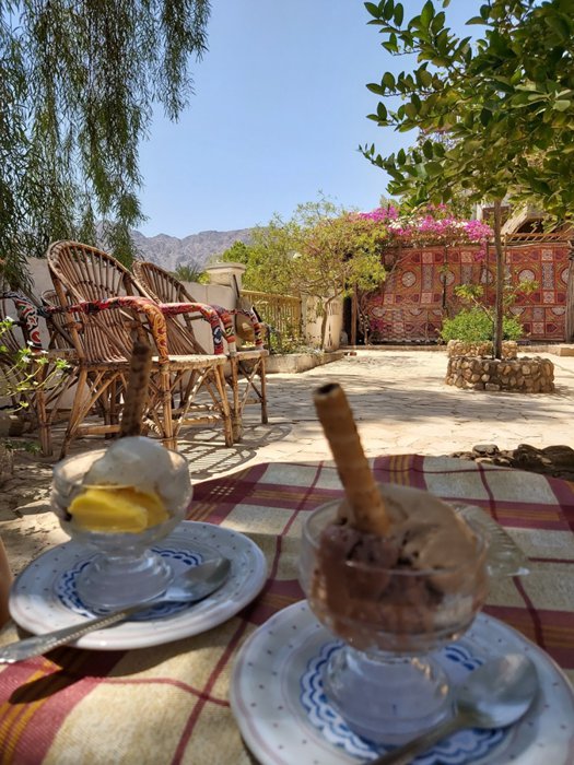 Little Prince Café is a nice café in the city of Nuweiba. It attracts many customers with its colorful and distinctive decorations, its picturesque outdoor garden, and its excellent and friendly service. Its menu includes some snacks, fresh pies, homemade desserts, ice cream with different flavors, and a wide selection of cold and hot drinks such as milkshakes and juices Fresh soft drinks, tea, coffee, cappuccino and more.