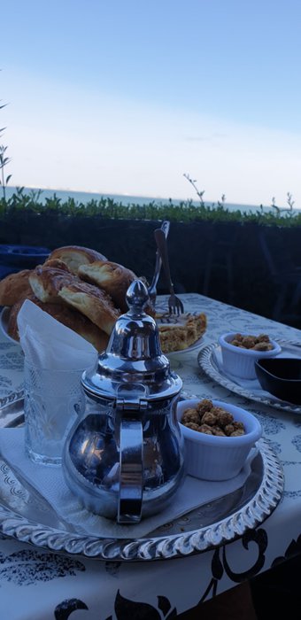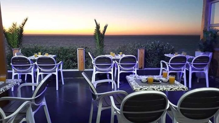 Unique sessions enjoyed by Café Mirallis in the city of Dakhla, where the outdoor balconies of the place overlook the ocean and the water surface, which makes customers come to it, to enjoy one of the delicious options in the open air, including meat pies with onions, pastries stuffed with jam and cheese, and other meals Light served with tea and coffee.