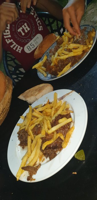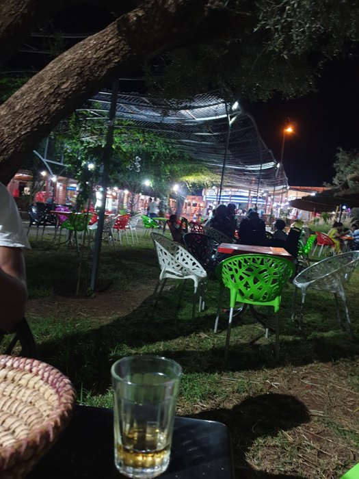 There are many comfortable plastic seats, on which individuals sit, in the garden of Tariq Restaurant and Café, in the open air, for customers to enjoy the refreshing breezes, while eating one of the delicious options, including Moroccan couscous with tea, juices and hot bread, meat with tomatoes and fried potatoes And many other local food items.