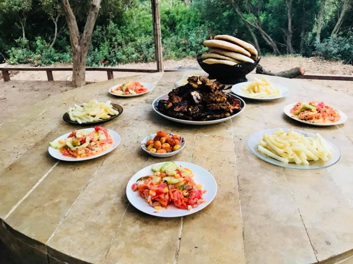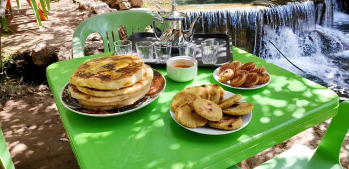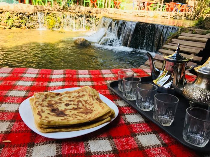 Paradise Café and Restaurant in the Akchour region is not only unique in its unique menu, but also in its private outdoor sessions, in front of which is the watercourse of waterfalls, surrounded by green plants and stunning natural beauty, and individuals can order dishes including Moroccan pancakes and biscuits Local, which is served with natural drinks such as juices and hot tea. The restaurant also provides delicious grills with salads, fried potatoes, and fresh fruit dessert.