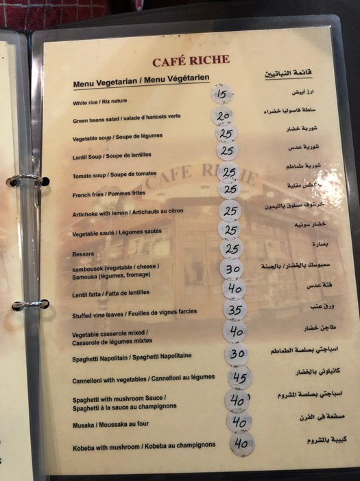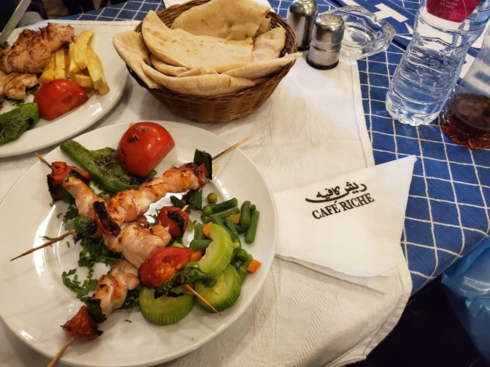 Rish Cafe is one of the most beautiful and famous cafes in Cairo Governorate, because it is one of the oldest cafes in the city, and a place visited by dozens of Egyptian and non-Egyptian writers and thinkers over the decades. The café is also distinguished by its beautiful building, which is full of history and originality, as its external façade is covered with wood, and the interior is full of old decorations and paintings. The café serves traditional oriental dishes such as kebabs, shish tawook, grape leaves, moussaka and many others.