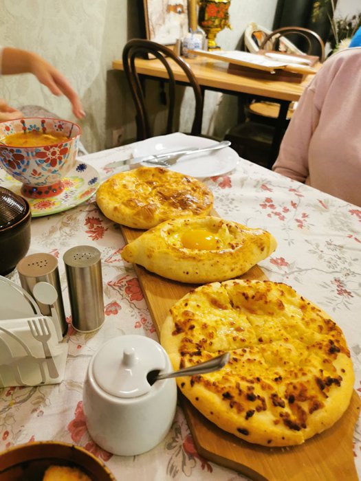 Tatin Café, is a local café, serving delicious options of traditional breakfast meals, from Georgian cheese bread khachapuri, egg pastries, sweetened pancakes, cinnamon rolls with cream, carrot and potato soup, eggplant with walnut sauce, Georgian potatoes, zucchini with nuts, and others, from Options that customers can eat with hot drinks of coffee and tea, or cold drinks of natural juices.