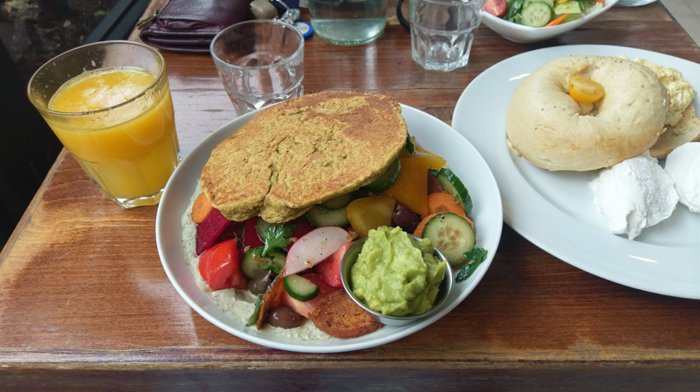 This wonderful café in Tel Aviv serves breakfast throughout the day. It is not any ordinary café. Its decor is very youthful. You can find graffiti drawings on the walls and wonderful antique furniture. It is one of the favorite places for hippies in the city because its environment is calm and comfortable, and because most of the dishes served On the menu is vegetarian. Among the dishes served there is a pink granola dish, cream cheese bagels, pancakes and many more.