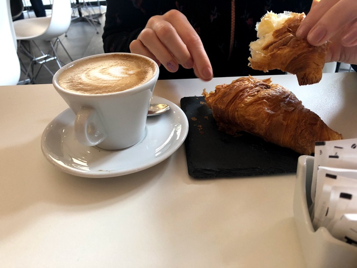 unique café where you can start your breakfast, especially if you are a big fan of coffee and croissants (plain or filled with cream). The café was among the first places to open in the region serving the most delicious varieties of coffee, hot drinks, pastries, sweets, snacks and biscuits, especially the barista who could smell the good aroma from the doorstep of the café.