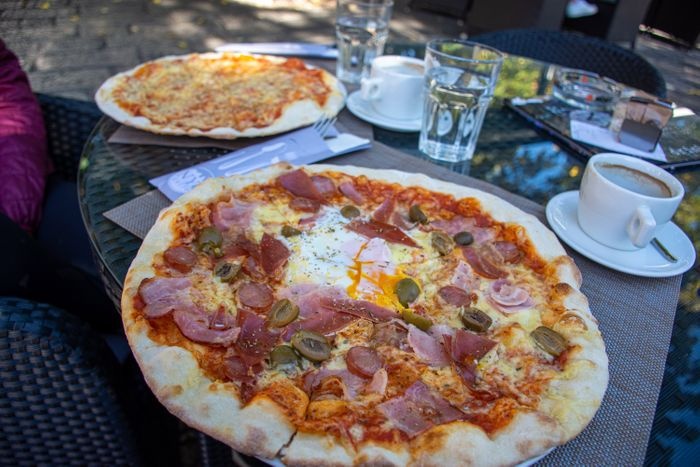 simple local cafe that enjoys a quiet and comfortable atmosphere suitable for groups and families. The place includes wonderful outdoor sessions in the open air, where the picturesque natural appearances and tall trees that give wonderful shades to the place. With regard to food, the restaurant offers limited options of food, such as pizza of all kinds, including vegetable pizza, pepperoni, and margarita, in addition to many types of sandwiches such as chicken sandwiches with cheese. The restaurant also provides various types of hot and cold drinks such as cappuccino, American coffee, and ice coffee. And natural juices.