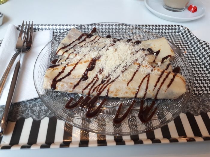 luxurious coffee shop that is characterized by its beautiful classic décor, which made it look like royal palaces. The curtains are of a bright silver color and decorated with many ornaments, as the silver color complements beautifully with the pink furniture. As for food, the restaurant offers a luxurious selection of delicious desserts, such as cheesecake with wild berries, soufflé with ice cream, waffles with fruits, and crepes with chocolate. These desserts are made fresh on a daily basis. In addition to sweets, the menu also provides some types of snacks that are suitable for lunch, such as green noodles and pancakes.