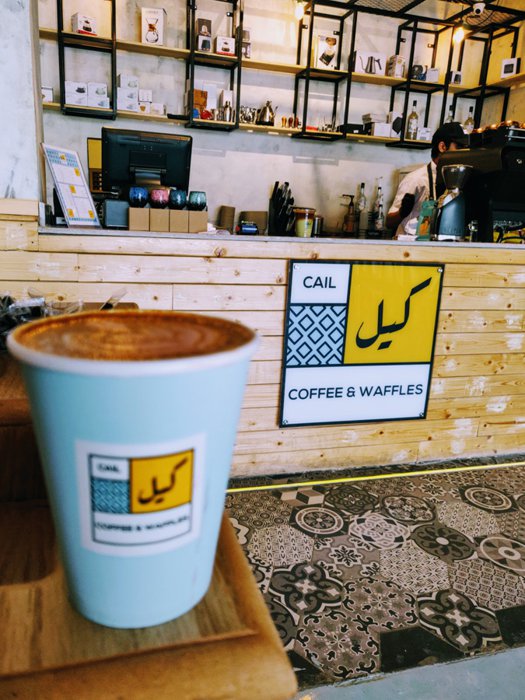 Despite its modest modern Kale Café, it is considered one of the cafes that many people like, thanks to its kind and helpful staff, its low prices, and its distinctive menu that contains latte, Arabic coffee, white mocha, flat white, espresso, ice chocolate, waffles with various additions, sweetened pies, and more.