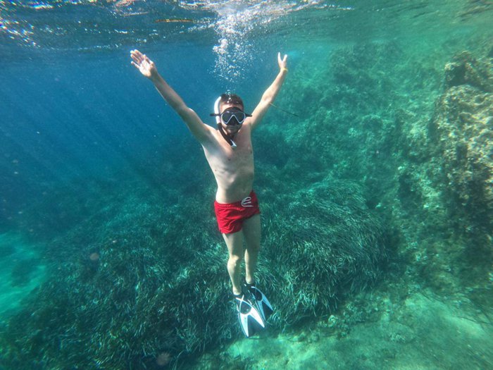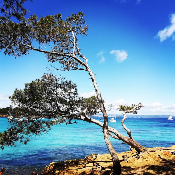 Calanques de Bregançonne is a narrow rocky rift located in the southwestern part of the island of Porquerol. It is famous for its depth of water suitable for swimming and snorkeling. There is much to see underwater at the point where the sea meets granite cliffs. Marine life thrives in this area, and you will probably find dozens of Brightly colored wrasses and groupers play among the waves.