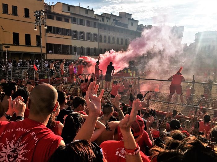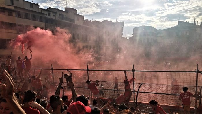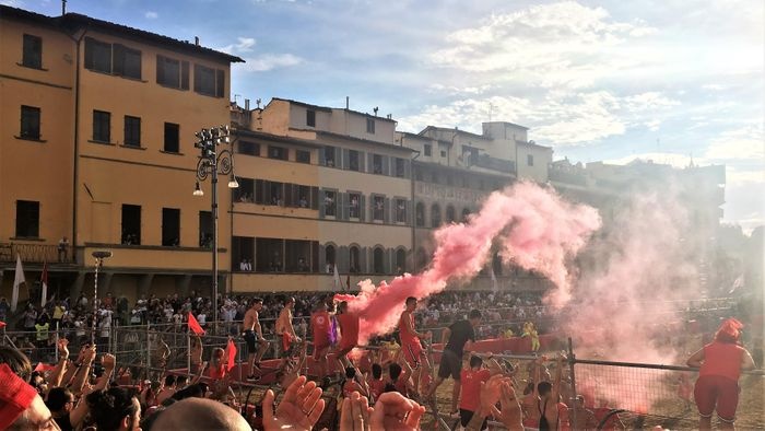 It is not the usual football game, especially since the history of the traditions of this match dates back to the sixteenth century, as the semi-final match takes place during the first weekend of June (6) in a sand-filled square in front of the Church of Santa Croce, and the players from the four teams wear uniforms Medieval style, they can punch, kick and slash their way to the target in any way they can, an activity that is universally recognized. The final match will be held on the feast day of the patron saint of Florence, "Saint John the Baptist", corresponding to the 24th of June, as the show begins at four o'clock and the match begins at five o'clock. It's really cool and fun to watch.