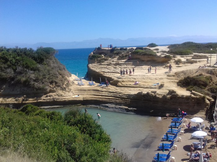 Greek folk tales tell that whoever swims through the channel of love with someone he loves will stay together forever and only death will separate them, so it is not surprising that visitors flock in large numbers to relax and swim at this beach. This channel was formed by rocky cliffs that paint a natural painting that makes its beach one of the most beautiful beaches in Corfu, especially since the area is full of caves and water channels suitable for going on exploration trips or for practicing water sports.