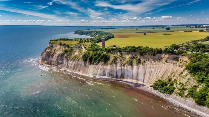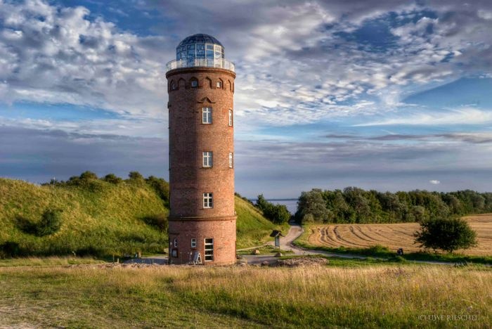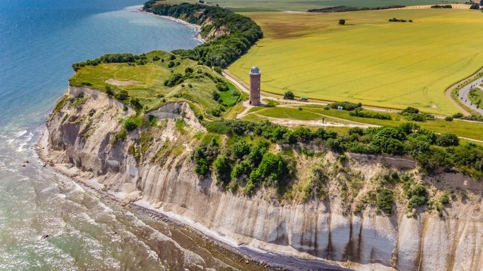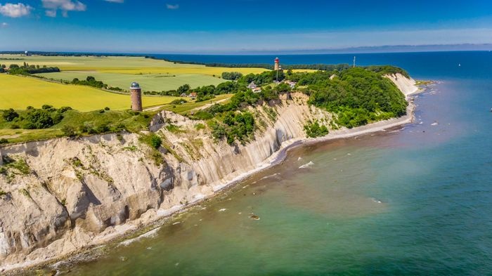 Cape Arkona is a 45-meter-high cape on the island of Rügen in the Mecklenburg-Vorpommern district. It forms the tip of the Witto Peninsula a few kilometers north of Jasmund National Park. It is one of the most popular tourist destinations in Rügen, receiving around 800,000 visitors annually. In addition, there are two lighthouses on the cape, a navigational tower, two military bunkers, the Slavic temple fortress of Jaromarsberg, and many tourist buildings such as restaurants, cafes, and souvenir shops.