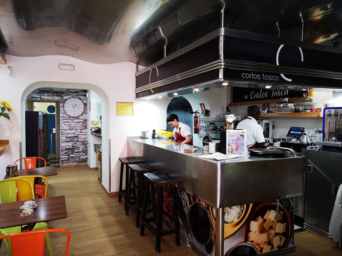 Carlos Tasca is a warm and colorful place that serves various tapas dishes, traditional local dishes and coffee. It has distinguished indoor and outdoor seating. It features family recipes for homemade stews, calamari, fried eggs, strudel and cod. You can enjoy each of its terraces in the middle of Calle Real. Crowded or indoor sessions.