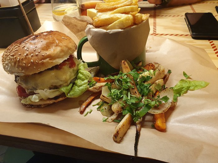 Karmenik Cantina Restaurant uses the freshest ingredients to prepare the tastiest burger in Dansk, where succulent vegetables, pickles, crispy onions, golden cheese and sliced meat rich in delicious barbecue sauce combine between two pieces of fresh bread, prepared daily, and served with crispy fries, various sauces and refreshing drinks; Its menu includes a range of falafel sandwiches, chicken with cheese, and more.