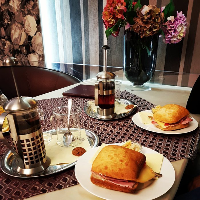 The highlight of Café Carolina is hand-selected Arabic coffee roasted by the owner, along with freshly made hand-baked bread and irresistible croissants. In addition to what was previously mentioned, there is a distinguished group of light breakfast sandwiches and various desserts, which are served with a range of cold or hot drinks. Do not hesitate to visit this restaurant and start your day in a special way with your loved ones.