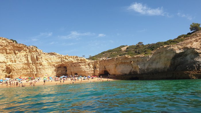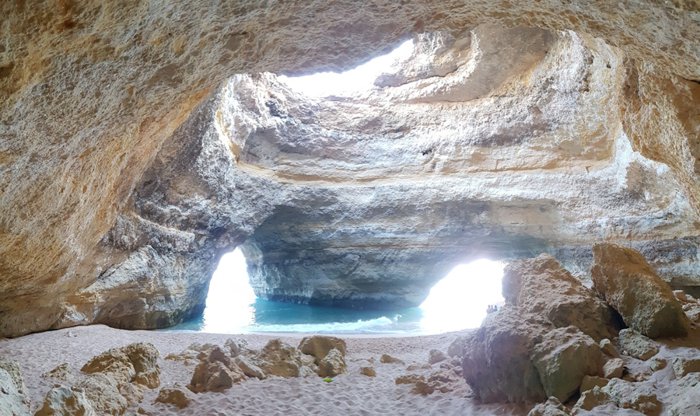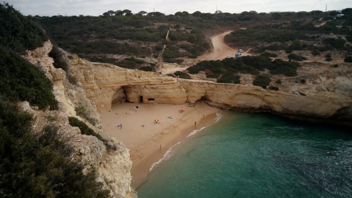 Carvalho Beach is a very small beach that takes the shape of a letter V, surrounded by a group of steep rocky cliffs, and what it offers of stunning natural scenes that mix golden rocks and pure turquoise water gives the place a magical and romantic character, and according to the locals, this beach was named It is named after a captain called Carvalho, who owned this beach in the old days.