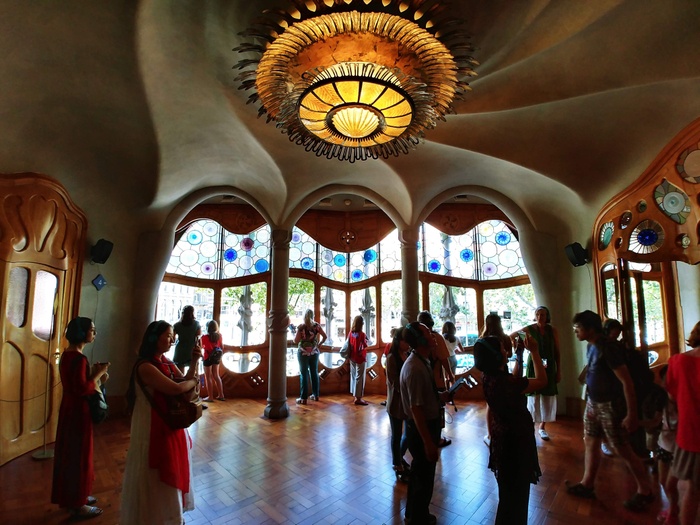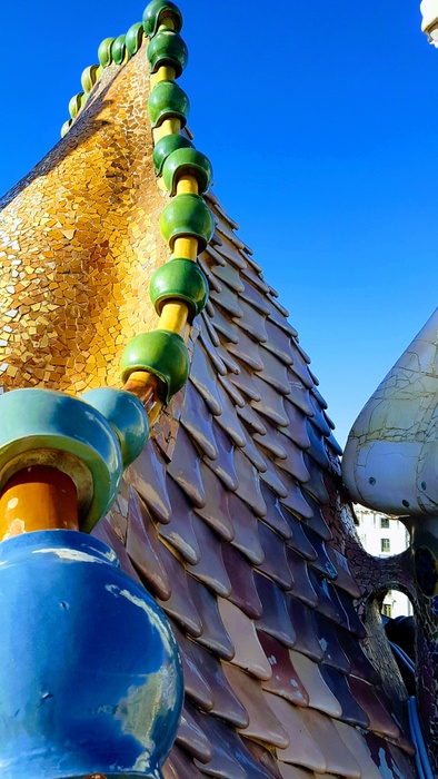 The colorful Casa Batlló, an old house dating back to the 19th century, renovated in the well-known neoclassical style, is one of the many masterpieces of the famous architect Gaudi in Barcelona. This building has become a famous landmark in Barcelona and is open to the public. It was awarded the 2004 Europa Nostra Prize for Preserving Cultural Heritage and was inscribed on the UNESCO World Heritage List in 2005. It is definitely a landmark worth visiting, as it features stunning decorations. And oval windows, and stone carvings, and a lot of mosaics that decorate the facade, ceramic tiles, and the arched ceiling.