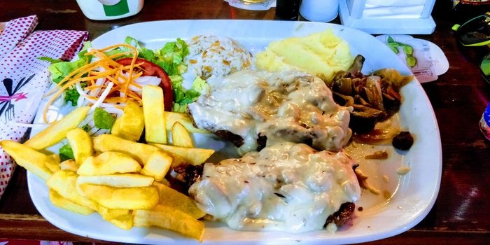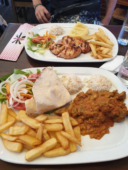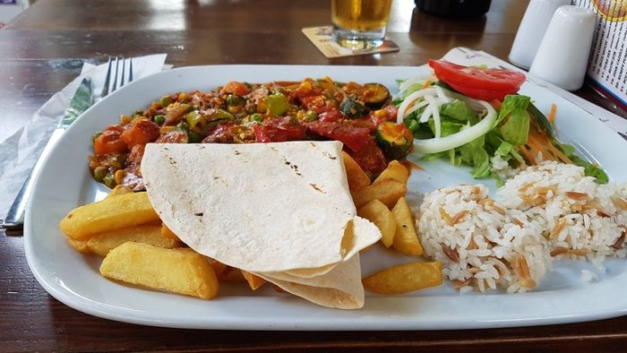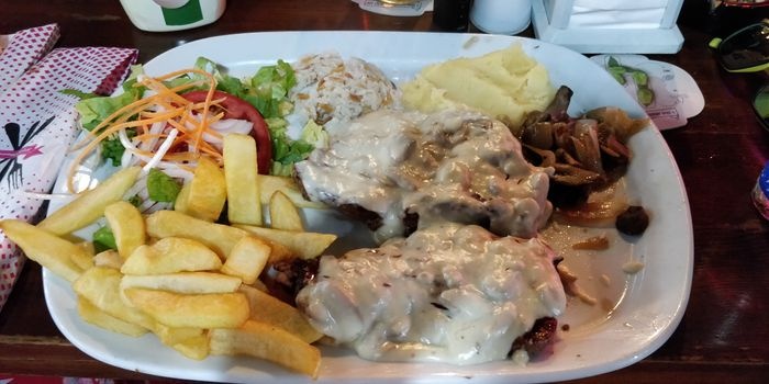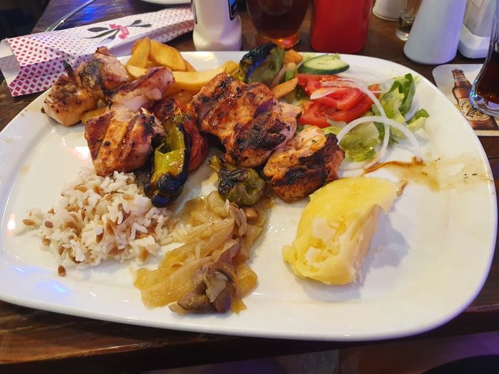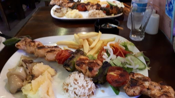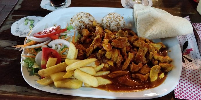 Casablanca Restaurant specializes in serving traditional Indian and Turkish cuisine, in two indoor and outdoor seating areas, which enjoy a traditional design, with simple and multiple wooden tables and chairs, which makes it a suitable place for groups. The menu includes various grilled dishes, including kebabs, shish tawook, meatballs, and kofta, which are served with french fries and grilled vegetables, in addition to lamb steak and sausage dishes. Various pasta dishes, pizza, and seafood dishes, including calamari, are also available. Fried shrimp, anchovies, and a children's menu are also available.