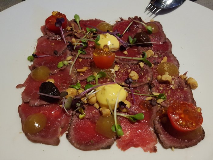 One of the most prestigious destinations for eating delicious dishes in the city is Caviar and Paul Budapest Restaurant. Its interior design is dominated by light gray color and white walls. Comfortable seats and tables are distributed in its hall that suit large or small groups. The menu offers traditional options of dishes, including, crab Seafood, tomatoes with berries, fried shrimp, grilled salmon pieces with mashed potatoes, and more, which are served with drinks and followed by desserts.