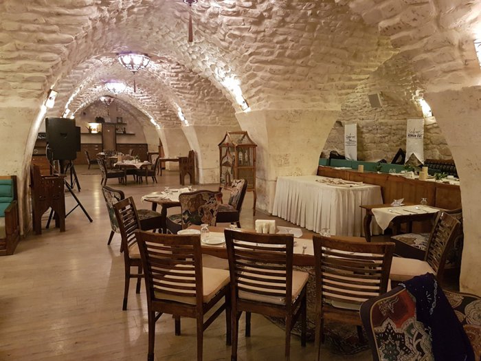 This restaurant is located in Khan Al-Jawaher, and its courtyard can accommodate 500 people, its indoor hall for 150 people, the VIP room for 16 people, and its outdoor balcony for 750 people. It is characterized by providing free internet, private parking, and excellent and fast service. It also offers a varied menu that includes traditional dishes Urfa, Burani, stuffed meatballs, grilled kebabs, eggplant kebabs, onion kebabs, tandoori lamb and many other delicious items. In this restaurant, you can also enjoy a local breakfast with live music every day.