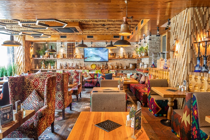 restaurant from a series of wonderful oriental restaurants in the heart of Moscow, and these restaurants were able to create for themselves wide fame and an excellent reputation because of the delicious dishes they provide, and because of the wonderful service they provide, as well as because of the comfortable restaurant environment suitable for family and friends meetings. When you enter the restaurant, you will be impressed by the oriental decorations in the place that will make you feel that you have entered one of the tales of One Thousand and One Nights. The restaurant prepares its dishes following traditional Arabic recipes. Among the dishes it offers, you will find kebabs, shish tawook, shawarma, hummus, muttabal, and many more. In this restaurant, you can also smoke hookah with all flavors.